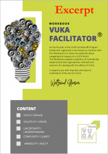 You will receive a workbook (128 pages) with well-founded, practical ideas on a central topic or tool related to the VUCA environment. The aim is to understand VUCA not as a threat, but as an opportunity – and to develop concrete solutions for dealing with volatility, uncertainty, complexity, and Ambiguity.