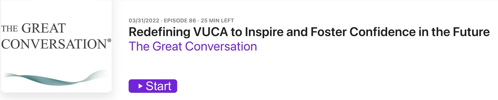 We have a great conversation around helping leaders “return to curiosity” about themselves, the others around them, and their impact on their companies and the world. We come away with a positive substitution for the VUCA acronym: Vision, Understanding, Clarity, and Adaptability. And that is a worthy starting point for leader’s growth, personally, professionally, and within the context of their business.
